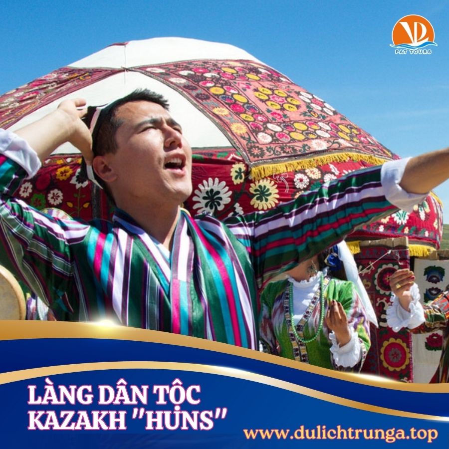 Đoàn khởi hành đến Làng dân tộc Kazakh “Huns” – Ngôi làng dân tộc là một nơi hoàn hảo cho những người sẵn sàng lao vào và trải nghiệm quá khứ du mục của người Kazakhstan. Ngôi làng cách Almaty khoảng 35 km ở quận Talgar cũng là một cách tuyệt vời để trốn lên núi hít thở không khí trong lành, cưỡi ngựa và khám phá các trò chơi và nghi lễ truyền thống của người Kazakhstan.