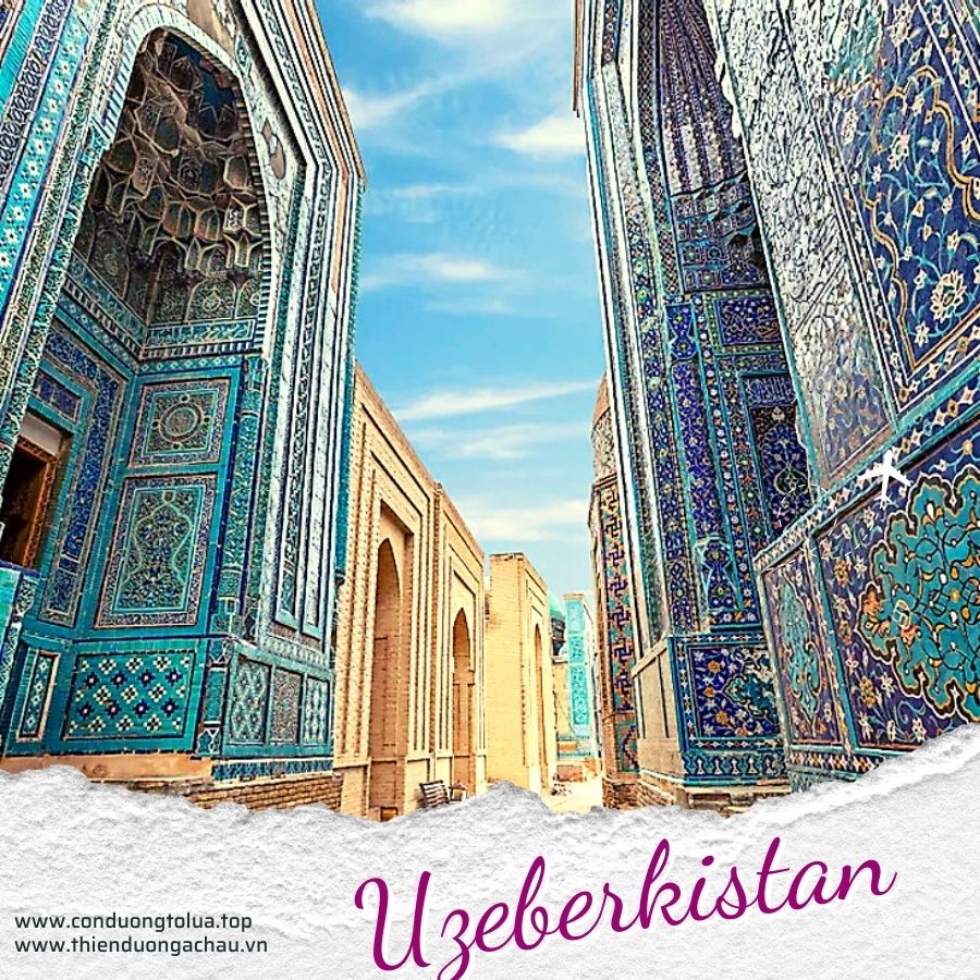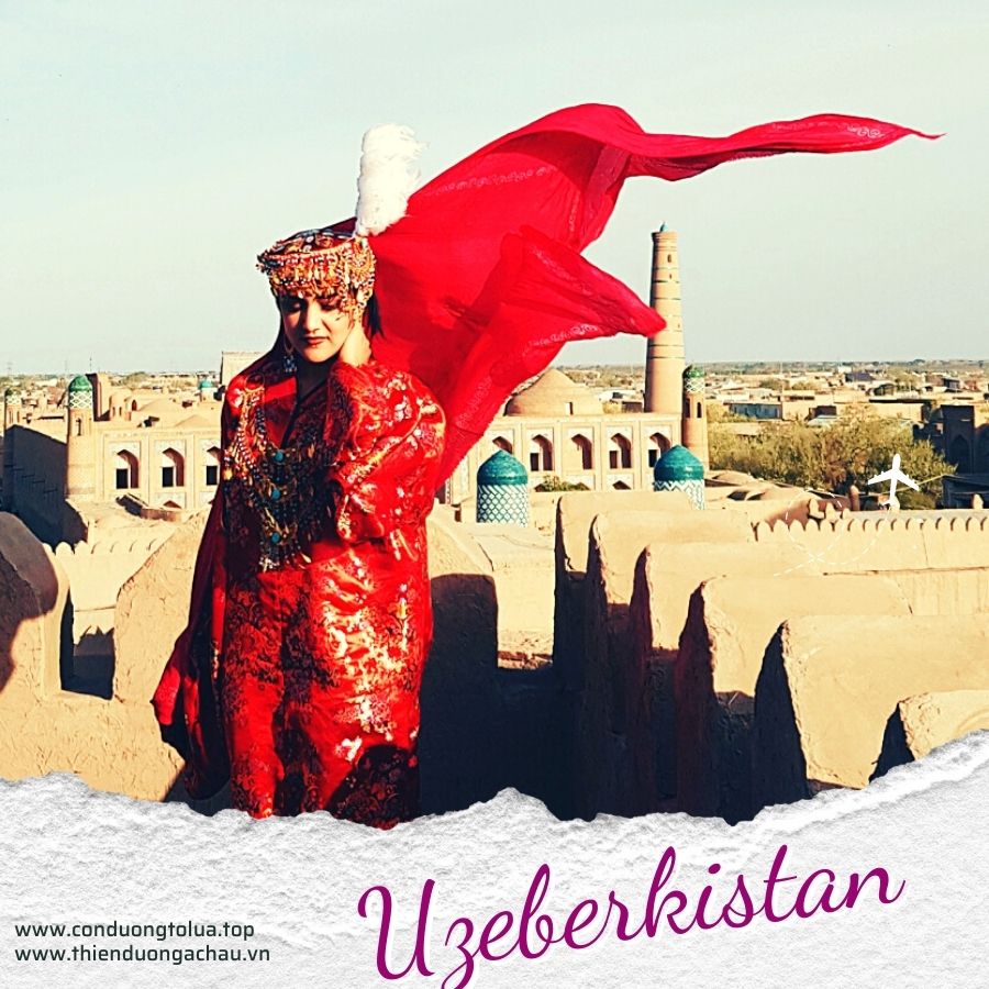 UZBEKISTAN : tự hào có thắng cảnh tự nhiên tuyệt đẹp với những cồn cát ấn tượng của sa mạc Kyzylkum ; hay những hồ nước và những ngọn núi hùng vĩ , thảo nguyên và ốc đảo xanh tươi ; những thung lũng màu mỡ với những vườn cây ăn trái như dưa và nho ngon nhất của người Uzbekistan ; Uzbekistan cũng là đất nước của những thành phố lịch sử nổi tiếng thế giới và những di tích kiến trúc ấn tượng nhất . Họ đã tham gia vào sự lớn mạnh và suy tàn của các đế chế hùng mạnh nhất thế giới của Alexander đại đế , Thành Cát Tư Hãn và Tamerlane ; những thành phố du lịch nổi tiếng ; Tashkent , Samarkand ; Bukhara ; Khiva ....
